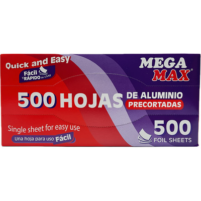 MEGA MAX HOJAS DE ALUMINIO PRE CORTADAS 30CM X 27.3CM 500 HOJAS